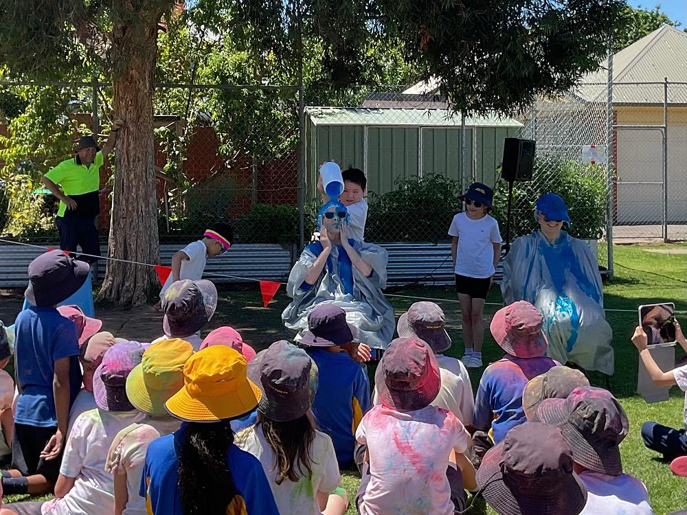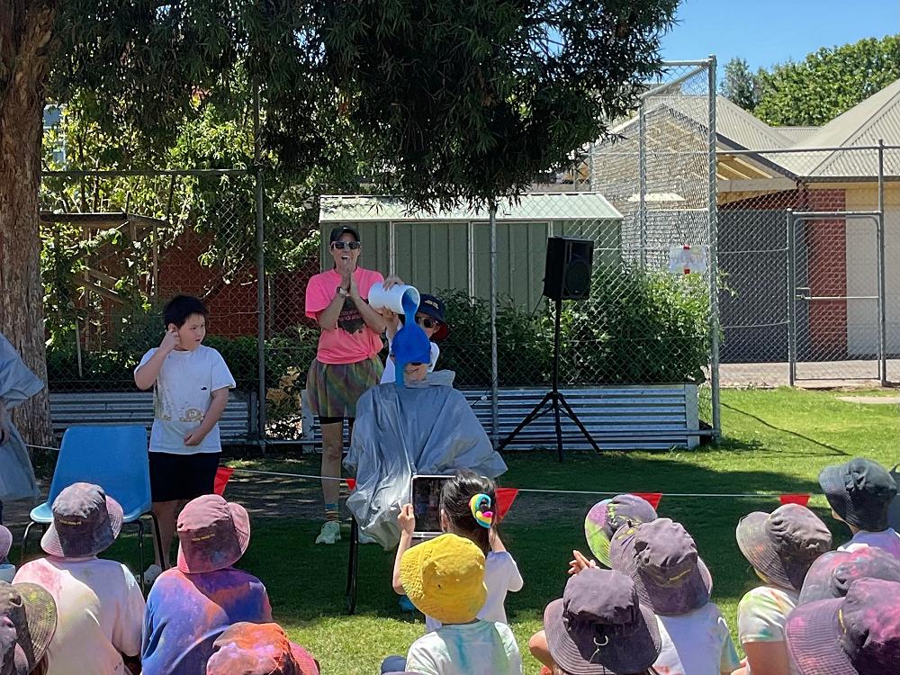 The weather was perfect, the smiles were bright and the sense of community spirit was felt all across the school. Students had a fantastic time running, laughing and getting covered in colour. A special shoutout goes to Ms Dora, Ms Lindy and Ms Copeland, who bravely agreed to be slimed 😨 if we reached our fundraising goal of $3,000, and thanks to the support of our community, we reached it with ease.
